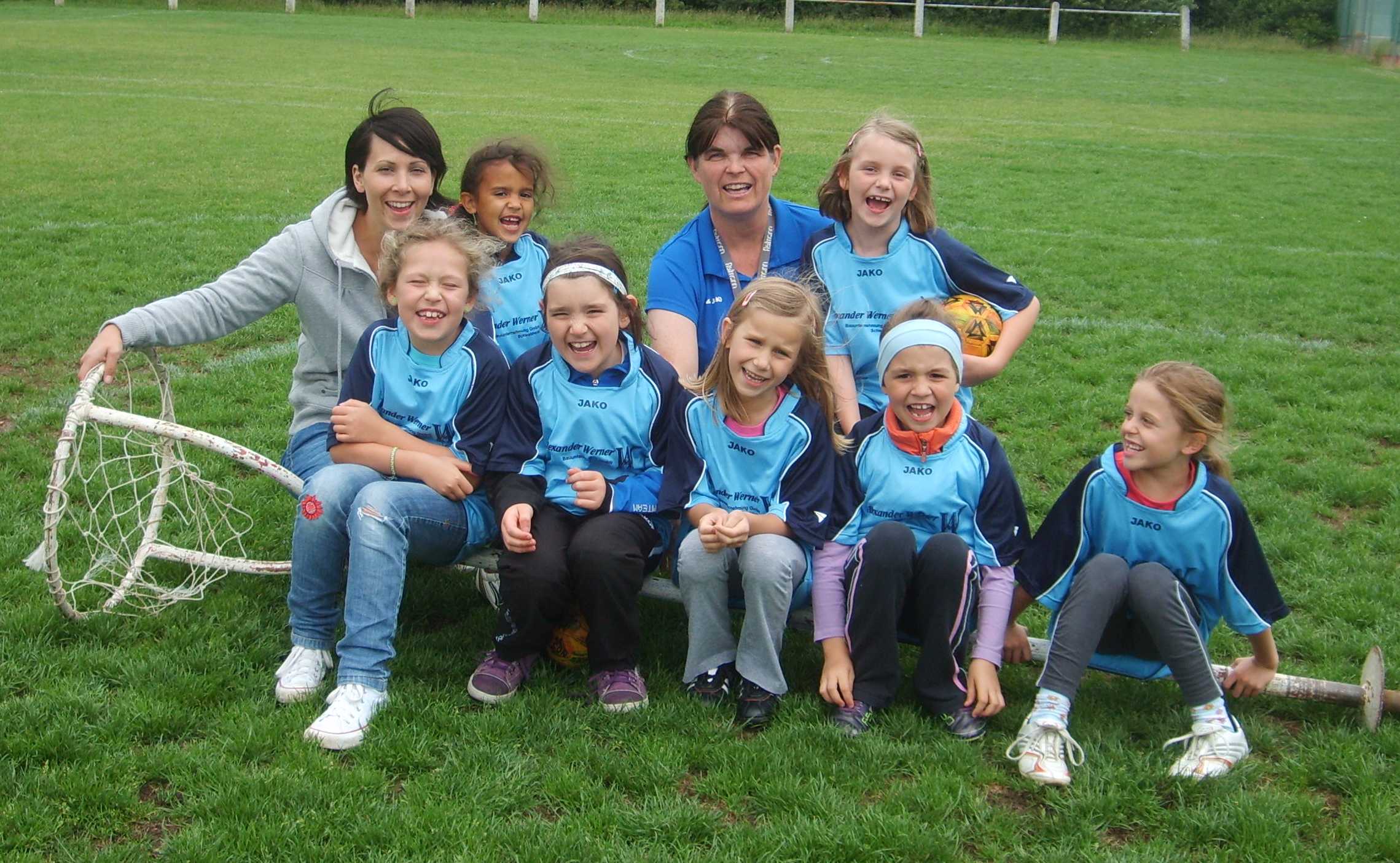 Hinten (von links): Trainerin Anja Hümmer, Elisha, Trainerin Barbara Hart, Emma