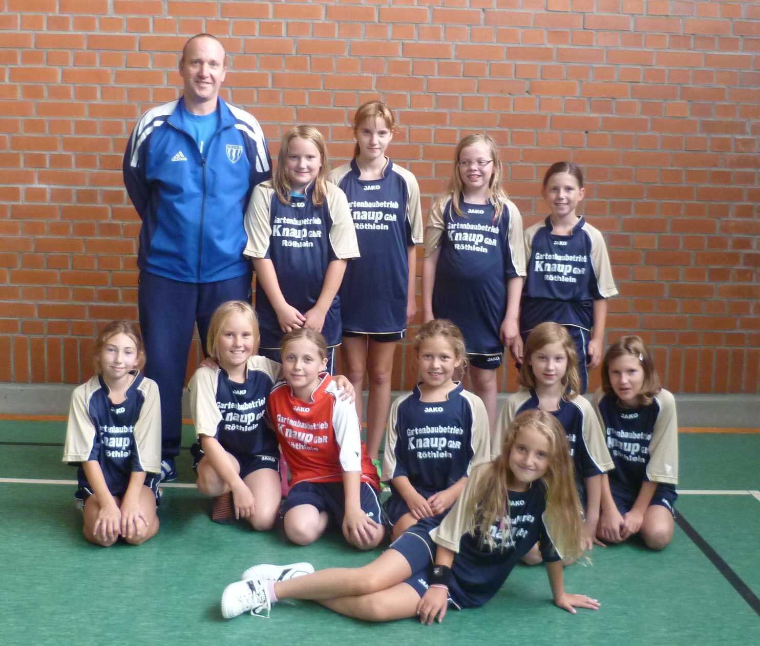 Vorne (von links): Katharina, Anna-Lena, Hannah, Jule, Tamina, Sarah, Nathalie Es fehlen: Trainer Axel Zickler, Maria