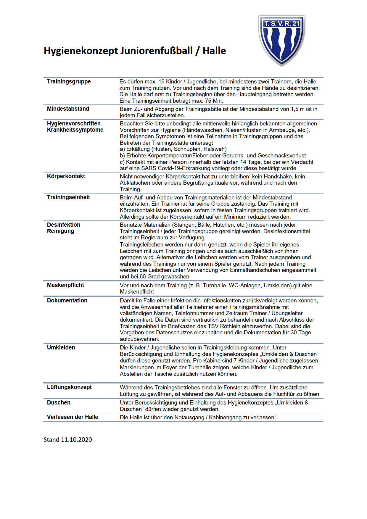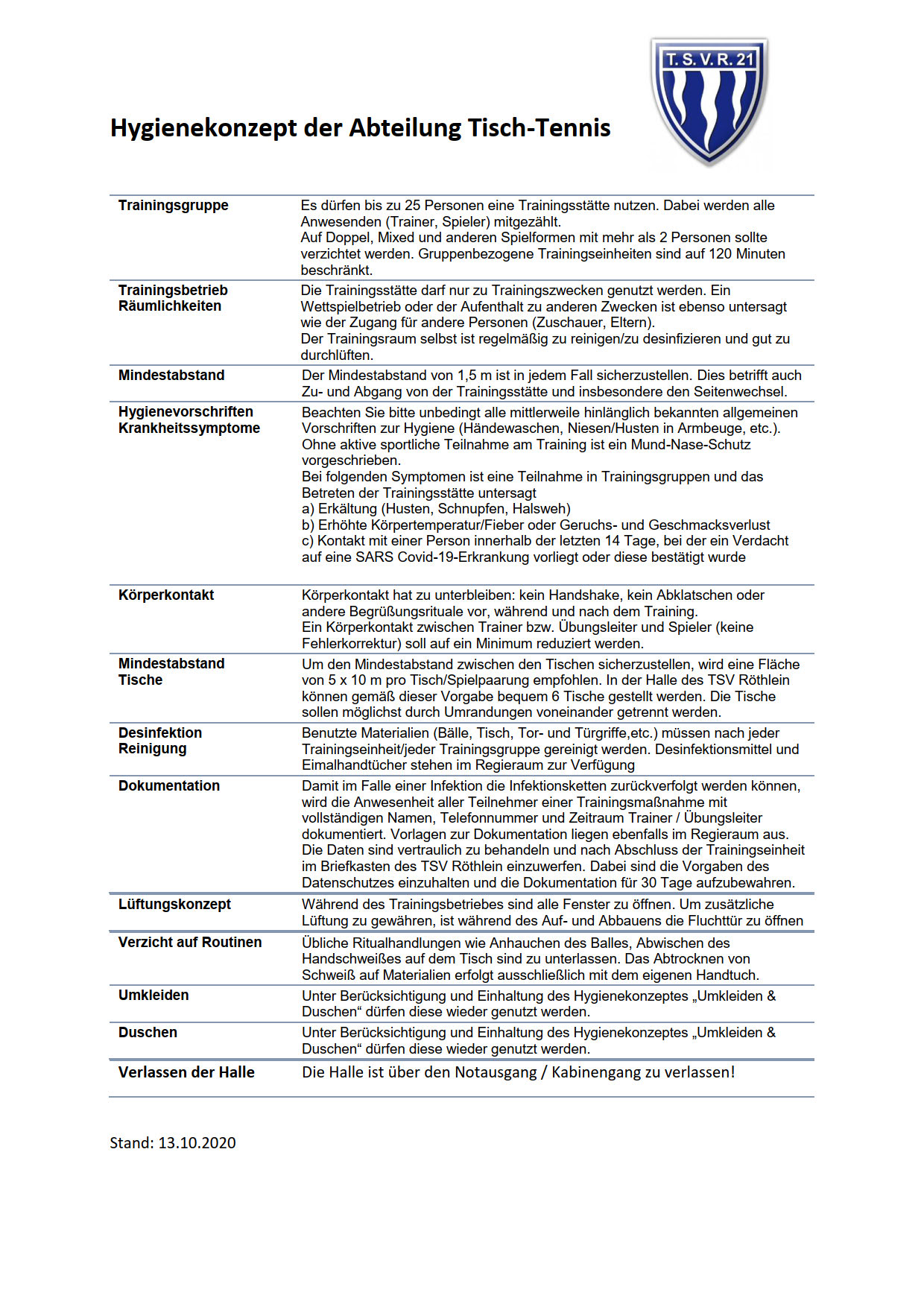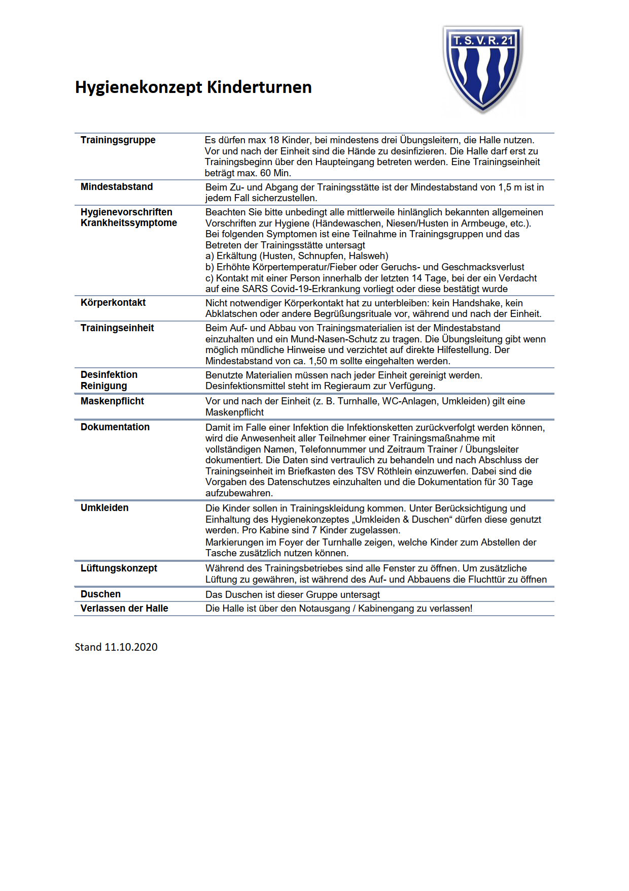 Aktualisierter Sicherheits- und Hygieneplan