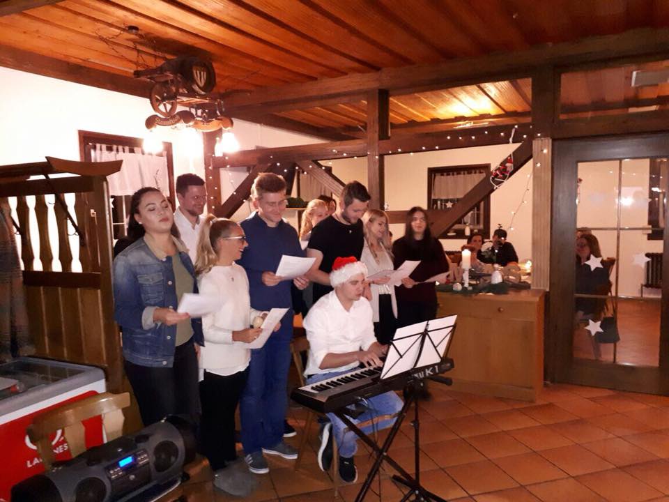 Musikalisch umrahmt wurde der Abend von der Gruppe „JUNG & SPORTLICH“. Anschließend ließen wir den Abend auf der weihnachtlich geschmückten Terrasse mit heißen Cocktails, Glühwein, Waffeln und original Flammkuchen ausklingen.